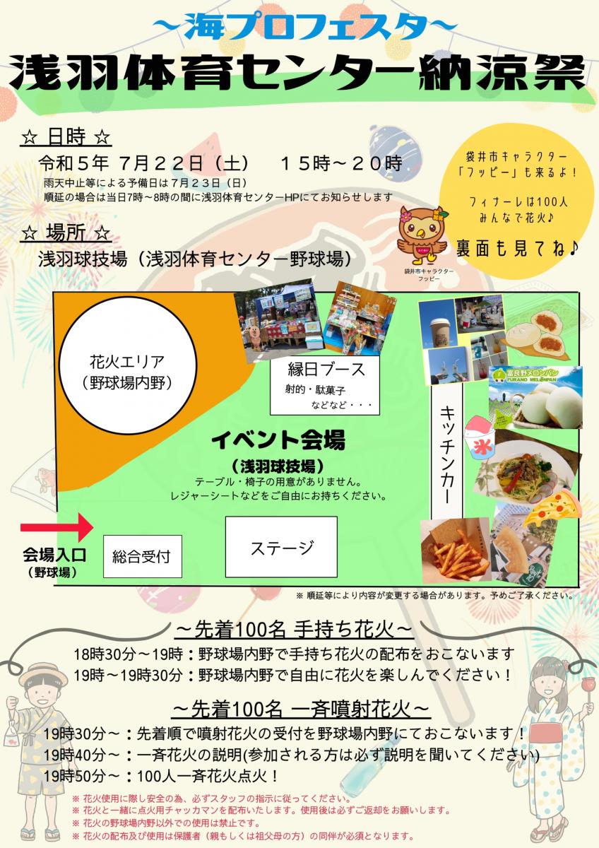 7/22(土) 15:00-20:00 浅羽体育センターにて、納涼祭が開催されます!